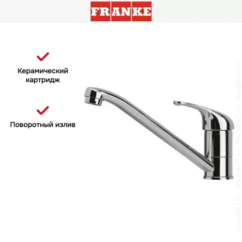 Franke Basic — низкий однорычажный смеситель, выполненный в универсальном дизайне. Угол поворота излива 360° повышает функциональность модели.