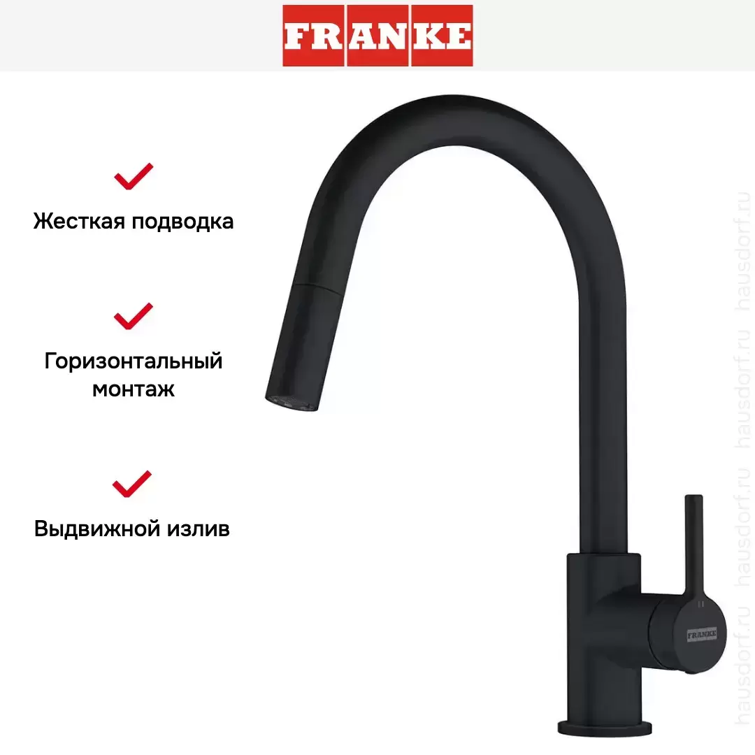 Модель Franke Lina с выдвижным шлангом черный устанавливается привычным способом: на бортик мойки или ванной в предназначенные для этого отверстия (они могут быть вырезаны производителями заранее, но если нет, при достаточной ширине можно добавить их самостоятельно). Жесткая подводка, хоть и недостаточно вариативная в расположении, имеет ряд преимуществ: долго служит, мало подвержена коррозии, проста в обслуживании, хорошо выдерживает перепады напора и температуры.