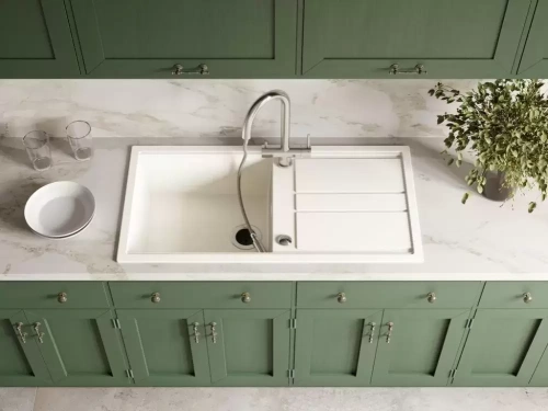 Специальная насадка позволяет выдвинуть излив как маленький шланг и направить струю в слишком высокую кастрюлю, которая не помещается под стационарным краном, на овощи в раковине, на загрязнения в неудобных уголках мойки, которые нужно удалить и т.д. Дополнительная деталь, которая повышает комфорт использования, — аэратор. Он делает поток воды мягче, насыщая его кислородом, таким образом дополнительно уменьшая ее расход: объем струи увеличивается за счет воздуха, а не за счет повышения напора из водопровода. К этой модели можно подключить фильтр для питьевой воды.
