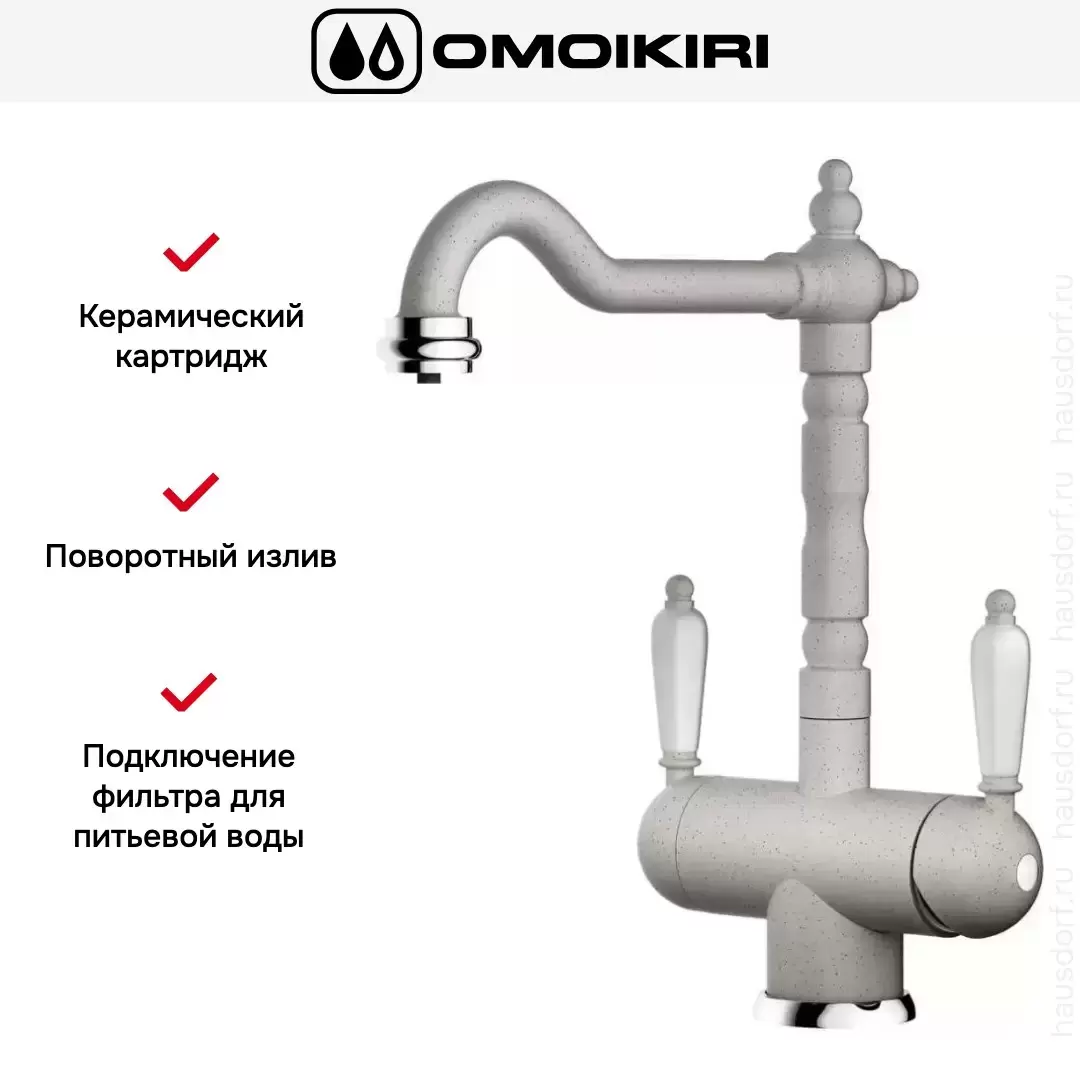 Смеситель Омойкири — отличный выбор для кухни и ванной комнаты. Классический вариант с двумя вентилями подойдет большинству пользователей: нужно настраивать напор и температуру воды из «горячей» и «холодной трубы» отдельно, поток смешивается внутри крана и на выходе имеет оптимальную температуру. Благодаря запорному механизму в виде керамических пластин такой смеситель прослужит много лет, так как в нем отсутствуют быстро стирающиеся прокладки; также на клапане практически не образуется накипь. При повороте ручки диски внутри смещаются относительно друг друга — открывают или блокируют воду.