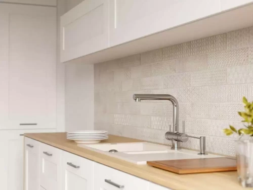 Специальная насадка позволяет выдвинуть излив как маленький шланг и направить струю в слишком высокую кастрюлю, которая не помещается под стационарным краном, на овощи в раковине, на загрязнения в неудобных уголках мойки, которые нужно удалить и т.д. Благодаря особой конструкции вы можете также направить воду из раковины в ванну или из одной чаши мойки в другую одним поворотом крана в нужную сторону. Дополнительная деталь, которая повышает комфорт использования, — аэратор. Он делает поток воды мягче, насыщая его кислородом, таким образом дополнительно уменьшая ее расход: объем струи увеличивается за счет воздуха, а не за счет повышения напора из водопровода. К этой модели можно подключить фильтр для питьевой воды.