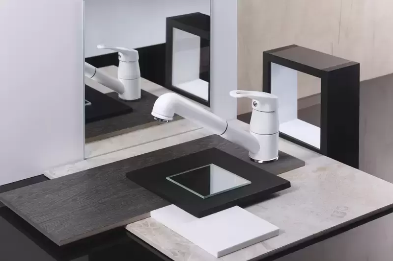 Специальная насадка позволяет выдвинуть излив как маленький шланг и направить струю в слишком высокую кастрюлю, которая не помещается под стационарным краном, на овощи в раковине, на загрязнения в неудобных уголках мойки, которые нужно удалить и т.д. Благодаря особой конструкции вы можете также направить воду из раковины в ванну или из одной чаши мойки в другую одним поворотом крана в нужную сторону. Дополнительная деталь, которая повышает комфорт использования, — аэратор. Он делает поток воды мягче, насыщая его кислородом, таким образом дополнительно уменьшая ее расход: объем струи увеличивается за счет воздуха, а не за счет повышения напора из водопровода.