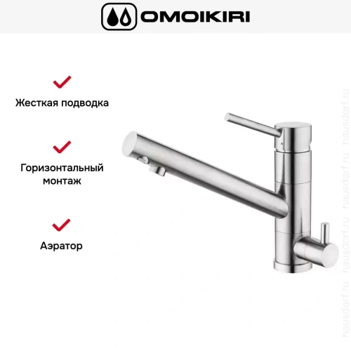 Модель Omoikiri TONAMI устанавливается привычным способом: на бортик мойки или ванной в предназначенные для этого отверстия (они могут быть вырезаны производителями заранее, но если нет, при достаточной ширине можно добавить их самостоятельно). Жесткая подводка, хоть и недостаточно вариативная в расположении, имеет ряд преимуществ: долго служит, мало подвержена коррозии, проста в обслуживании, хорошо выдерживает перепады напора и температуры.