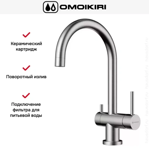 Смеситель Омойкири — отличный выбор для кухни и ванной комнаты. Классический вариант с двумя вентилями подойдет большинству пользователей: нужно настраивать напор и температуру воды из «горячей» и «холодной трубы» отдельно, поток смешивается внутри крана и на выходе имеет оптимальную температуру. Благодаря запорному механизму в виде керамических пластин такой смеситель прослужит много лет, так как в нем отсутствуют быстро стирающиеся прокладки; также на клапане практически не образуется накипь. При повороте ручки диски внутри смещаются относительно друг друга — открывают или блокируют воду.