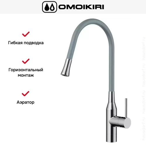 Модель Omoikiri YATOMI устанавливается привычным способом: на бортик мойки или ванной в предназначенные для этого отверстия (они могут быть вырезаны производителями заранее, но если нет, при достаточной ширине можно добавить их самостоятельно). Гибкая подводка позволяет расположить сантехнику в любом удобном месте, при этом нужно учитывать несколько важных нюансов: для максимальной надежности лучше выбирать сильфонные рукава, нельзя использовать ее вместо стационарного водопровода, только как соединительный элемент для крана.
