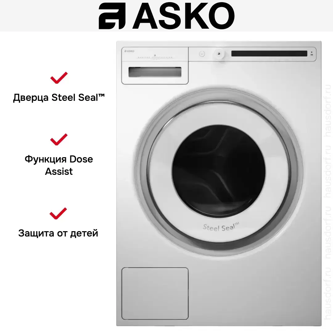Безопасность использования обеспечивается защитой от протечек, специальными датчиками для контроля дисбаланса и блокировкой панели управления от детей. Программа очистки барабана экономит время и силы на обслуживание прибора, а также обеспечивает повышенную гигиеничность. Белый цвет корпуса — классическое решение для большинства современных интерьеров. Прибор не только хорошо сочетается с различными стилевыми дизайнами, но и другой техникой бренда. Тихая работа — еще одно преимущество стиральной машины Аско W2086C. W/3. Максимальный уровень шума при отжиме составляет 76дБ, а при стирке — не превышает 51 дБ. Прибор можно установить в колонну, что позволяет сэкономить полезное пространство.