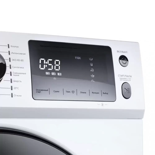 Машина оснащена 16 автоматическими программами стирки, включая быструю, интенсивную, ручную, стирку с защитой от сминания и предварительное застирывание. Имеется четыре режима сушки, а также специальная программа освежения и разглаживания паром. Электронная панель управления в верхней части фасада оснащена большим ЖК-дисплеем, сенсорными кнопками и поворотным программатором. Она позволяет выбрать температуру стирки, а также отложить старт на срок до 24 часов — например, чтобы выбрать время с наименьшими тарифами на электроэнергию. Пользователь можно задать собственные параметры стирки и сохранить их в памяти машины, чтобы потом вызывать одним нажатием. Панель управления можно заблокировать от детей. Безопасность использования гарантирует полная защита от протечек воды. Класс энергопотребления А свидетельствует о небольшом расходе электроэнергии.