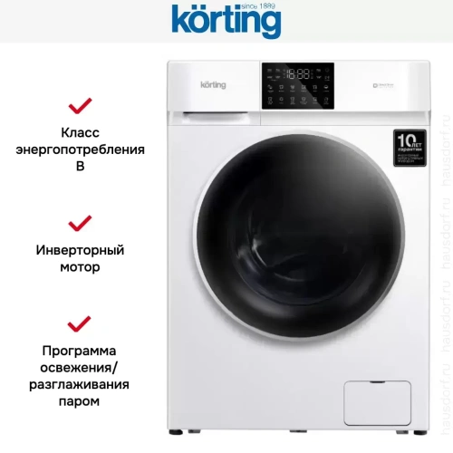 Модель обладает максимальной загрузкой белья до 10 кг, что делает ее идеальной для больших семей. Для сушки предусмотрена загрузка до 7 кг. Устройство оснащено 12 режимами стирки, включая стандартные программы для хлопка и смешанного белья, а также деликатную стирку для шелка. Экспресс-стирка позволяет быстро и качественно стирать белье, а программа освежения/разглаживания паром помогает избавиться от мелких складок и запахов.