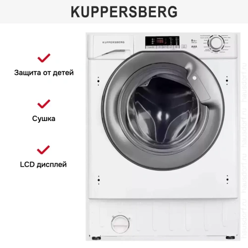 Встраиваемая стиральная машина Kuppersberg WD 1488 — модель с добавлением режима сушки, выполненная в белом цвете для любителей классики. Ничего лишнего, управление осуществляется аналоговым способом, с помощью кнопок и переключателя, но с выводом информации на удобный электронный дисплей. Для установки машины в гарнитур необходимо свериться с ее размерами, указанными в инструкции. Фронтальная загрузка и установка под столешницу идеальна для монтажа на кухне, в отдельном помещении под прачечную или просторной ванной. Максимальная загрузка бака для стирки — 8 кг, машина подойдет для семей из трех и более человек.