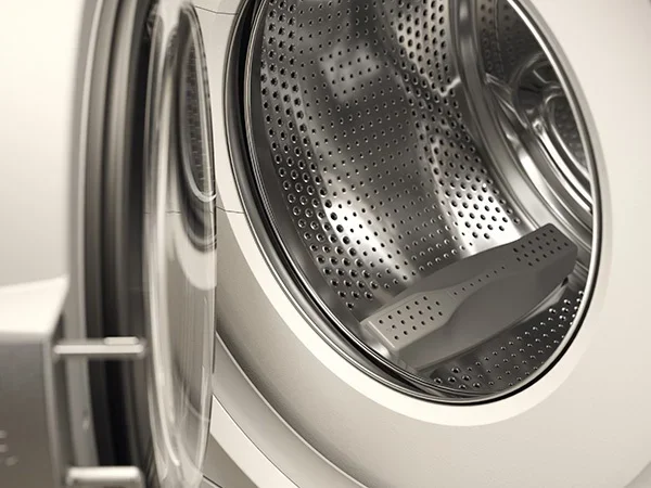 Барабан ActiveDrum и бак выполнены из нержавеющей стали, что гарантирует стойкость к коррозии и длительный срок службы металлических частей. Материал бака и барабана — хромоникелевый сплав нержавеющей стали, устойчивый к механическим воздействиям и высоким температурам; освещение внутри барабана облегчает загрузку и выгрузку. Корпус и элементы фурнитуры окрашены в белый цвет, а внутренняя защита поддерживается противовесами из чугуна и надежной системой слива с насосом. Мотор BLDC обеспечивает работу на скорости до 1600 об/мин при отжиме, а конструкция Quattro Construction™ повышает стабильность при нагрузках.
