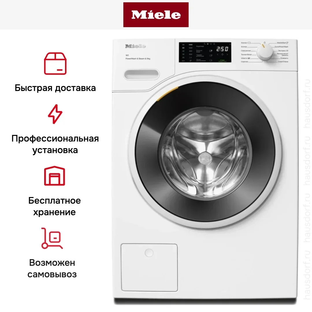 Стиральная машина Miele WWD380WCS White Edition сочетает элегантность и практичность в одном корпусе. Ее лаконичный белый корпус впишется в любой современный интерьер, а гладкая фронтальная панель с контрастной дверцей создают ощущение премиального продукта. Округлые формы и минималистичный дизайн делают устройство визуально легким и аккуратным, что особенно важно для открытой планировки или компактных прачечных.
