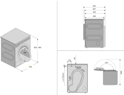Полноразмерный агрегат может быть встроен в колонну со стиральной машиной или установлен бок о бок с ней. Люк без резиновой манжеты исключает появление плесени и неприятного запаха. Конденсационная сушка с тепловым насосом действует быстро и бережно, пользователь может выбирать режим сушки по остаточной влажности: под утюг, в шкаф или очень сухое.