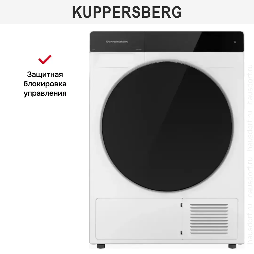 Сушильная машина Kuppersberg предназначена для домашнего использования, поэтому имеет стандартные габариты и большое разнообразие программ. Так как она устанавливается отдельно, нужно заранее найти достаточно места в помещении.