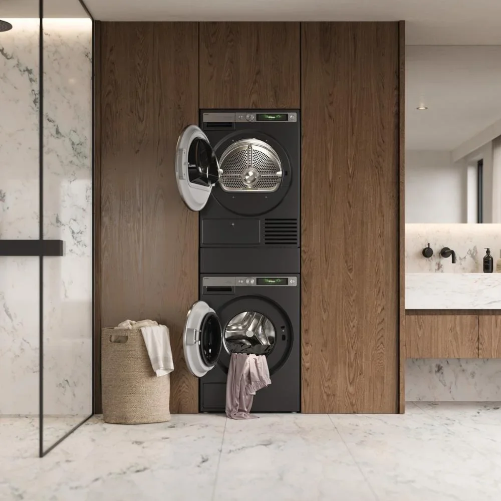 Сушильная машина ASKO T709HUG представлена в элегантном облике, где черный графит сочетается с элементами из нержавеющей стали, создавая солидный и лаконичный образ, способный органично вписаться в современную кухню или прачечную. Корпус модели имеет аккуратно оформленную круглую дверь с двойным стеклом и возможностью перенавешивания, что повышает удобство монтажа при установке в колонну. Горизонтальная панель с TFT-дисплеем и удобными кнопками обеспечивает интуитивное сенсорное управление, а индикатор времени до завершения цикла помогает планировать домашние дела. Внутренняя отделка бака и сам барабан выполнены из нержавеющей стали, а мягкая геометрия Soft Drum и лопасти Butterfly™ бережно обращаются с любыми тканями, сочетая эффективное вращение с нежной поддержкой волокон. Тепловой насос гарантирует экономичную эксплуатацию на уровне класса A++, а вместимость до 9 кг и объем барабана 117 л делают технику пригодной для больших семей и крупногабаритных вещей: пуховых изделий, одеял и тяжелых джинсов. Низкий уровень шума 58 дБ способствует комфортному использованию в жилых зонах, а длина сетевого кабеля 210 см и продуманная конструкция позволяют гибко размещать прибор в пространстве. Набор из двадцати программ охватывает широкий спектр потребностей: отдельные режимы для синтетики, шелка и шерсти, специальные циклы для мужских рубашек и спортивного белья, а также опции для джинсов и махровых полотенец; для срочных случаев предусмотрена быстрая сушка Quick Pro и режим проветривания. Сенсорная система Sensidry автоматически отслеживает остаточную влажность, обеспечивая оптимальную доводку под утюг или готовность к носке, а возможность настройки степени усушки и учета объема загрузки позволяет адаптировать процесс под конкретную партию изделий. Паровые функции расширяют спектр ухода: обработка паром освежает вещи и упрощает дальнейшее глажение, а отдельный парогенератор интегрирован в набор опций. Практичные детали включают отсек для конденсата и возможность подключения слива к канализации, наличие таймера с отсрочкой старта и звукового сигнала по завершении программы для удобства пользователя. При проектировании особое внимание уделено эргономике: подсветка барабана облегчает загрузку и выгрузку в темное время суток, а правый навес дверцы делает эксплуатацию удобной в большинстве компоновок. Температурные режимы «низкая» и «нормальная» дают выбор между щадящей и ускоренной обработкой, позволяя сохранить структуру и внешний вид текстиля. Этот аппарат от ASKO сочетает премиальный внешний вид и продвинутые технологии, предлагая надежное и экономичное решение для ухода за одеждой в домашней среде, где качество сушки сочетается с тщательной заботой о материалах и простотой управления.