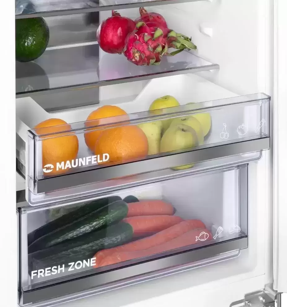 Специальная зона свежести предназначена для правильного и более длительного хранения овощей, фруктов, зелени. В ней поддерживается околонулевая температура, поэтому продукты не перемораживаются и не пересыхают.