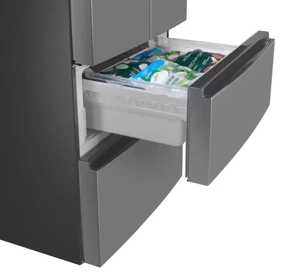 Специальная зона свежести предназначена для правильного и более длительного хранения овощей, фруктов, зелени. В ней поддерживается околонулевая температура, поэтому продукты не перемораживаются и не пересыхают.