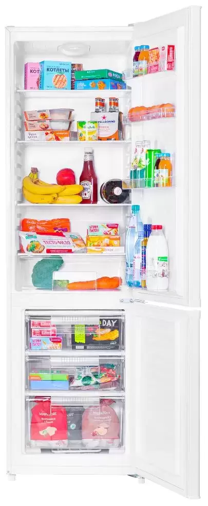 Данная модель — отдельностоящая, поэтому нужно тщательно подобрать место для ее размещения. Вы можете поменять направление открывания двери, так как упор переставляемый и ее можно перевесить на другую сторону. Такая функция открывает больше возможностей для установки. Холодильник с морозильником обладает всеми опциями, которые чаще всего ищут и выбирают покупатели. Стандартная конфигурация — универсальный вариант для любой квартиры. Количество камер: 2.