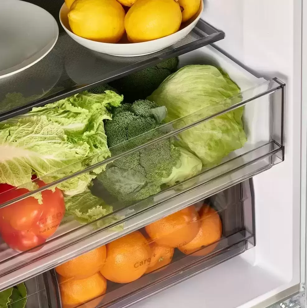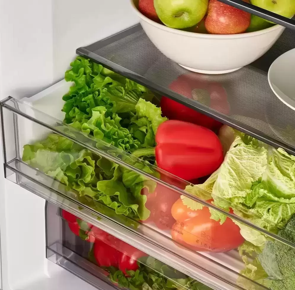 Специальная зона свежести предназначена для правильного и более длительного хранения овощей, фруктов, зелени. В ней поддерживается околонулевая температура, поэтому продукты не перемораживаются и не пересыхают.