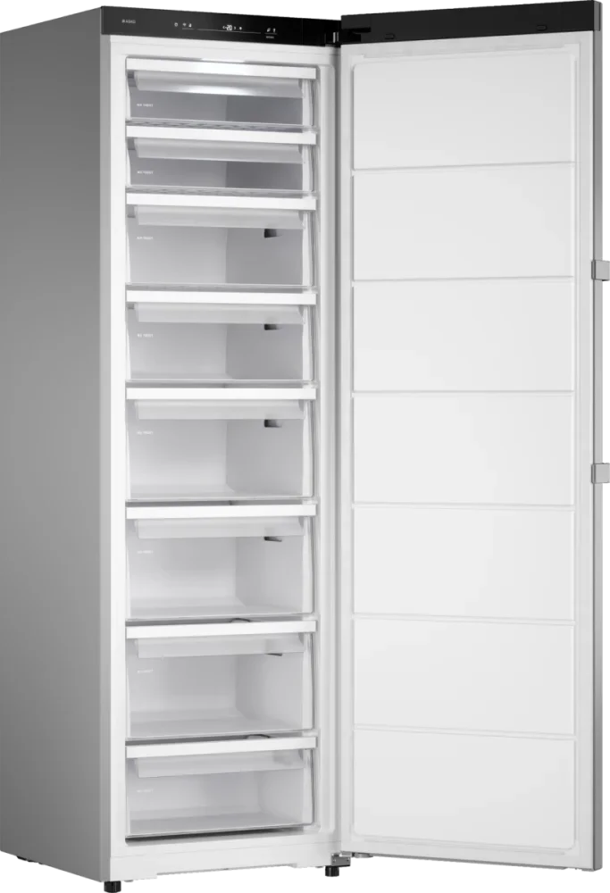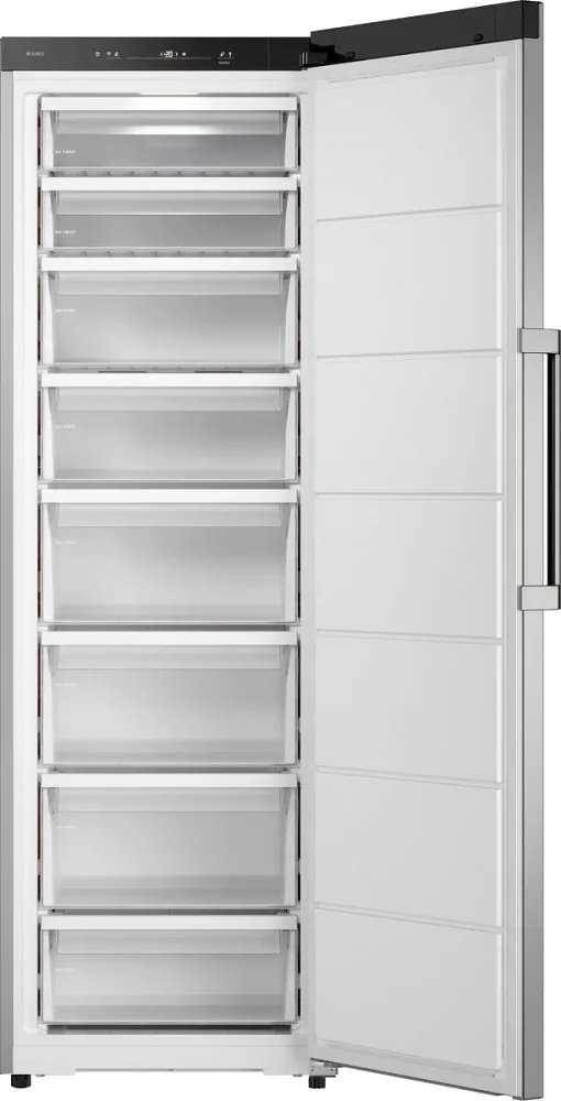 Морозильная камера ASKO RFF286KNCS1 представляет собой продуманное решение для тех, кто ценит сдержанную элегантность и функциональность: корпус в цвете нержавеющая сталь выполнен в дизайне Series 2 с рукоятью, украшенной гравировкой бренда, что придает прибору стильный и профессиональный вид, позволяющий гармонично вписать его в современное кухонное пространство. При высоте 185 см, ширине 59 см и глубине 59 см агрегат занимает минимум места относительно полезного объема: при общем объеме 337 л доступный объем составляет 294 л в единственной морозильной камере с одной дверью и дверным упором справа, при этом конструкция допускает перевешивание створки и установку Side-by-Side, а также монтаж в стандартную кухонную нишу KitchenFit. Система No Frost исключает образование наледи, упрощая эксплуатацию, а функция суперзамораживания повышает скорость быстрого охлаждения до 16 кг в сутки, что поддерживает качество продуктов при интенсивной загрузке; в случае отключения питания запас холода сохраняется до 17 часов. Управление полностью электронное с сенсорными кнопками и LED-дисплеем, обеспечивая точную регулировку температуры и визуальную индикацию статуса, а приложение ConnectLife.TRIR расширяет возможности контроля и настройки удаленно; предусмотрены адаптивный температурный контроль и светодиодное внутреннее освещение, упрощающее поиск и организацию продуктов. Внутреннее пространство спроектировано для удобства — восемь ящиков/отделений создают стройную систему хранения, а лоток для приготовления кубиков льда делает эксплуатацию еще комфортнее; контроль уровня влажности помогает сохранить оптимальные условия хранения, дополнительные режимы включают Шаббат, Вечеринка и Режим очистки, позволяющие гибко подстраивать работу под различные сценарии использования. Экологичный хладагент R600A в сочетании с инверторным компрессором и циркуляционной системой охлаждения обеспечивает эффективный теплообмен и низкий уровень шума — всего 34 дБ, при этом прибор характеризуется классом энергопотребления A++ и годовым расходом энергии 297 кВт·ч, а потребляемая мощность при подключении составляет 180 Вт. Практичные детали включают трехметровый сетевой шнур, регулируемые ножки для надежной установки на неровной поверхности, звуковую индикацию открытой двери и световую со звуковой сигнализацией при повышении температуры, а также один компрессор, обеспечивающий стабильную работу. Габариты упаковки 192×66×73 см и вес нетто 69,5 кг упрощают транспортировку и размещение, при этом вес брутто составляет 71,5 кг. Этот морозильник сочетает в себе строгий внешний вид и широкий набор функций, ориентированных на безопасность продуктов и комфорт пользователя, предлагая надежную работу и современные технологии для тех, кто требует от техники максимальной эффективности и удобства.