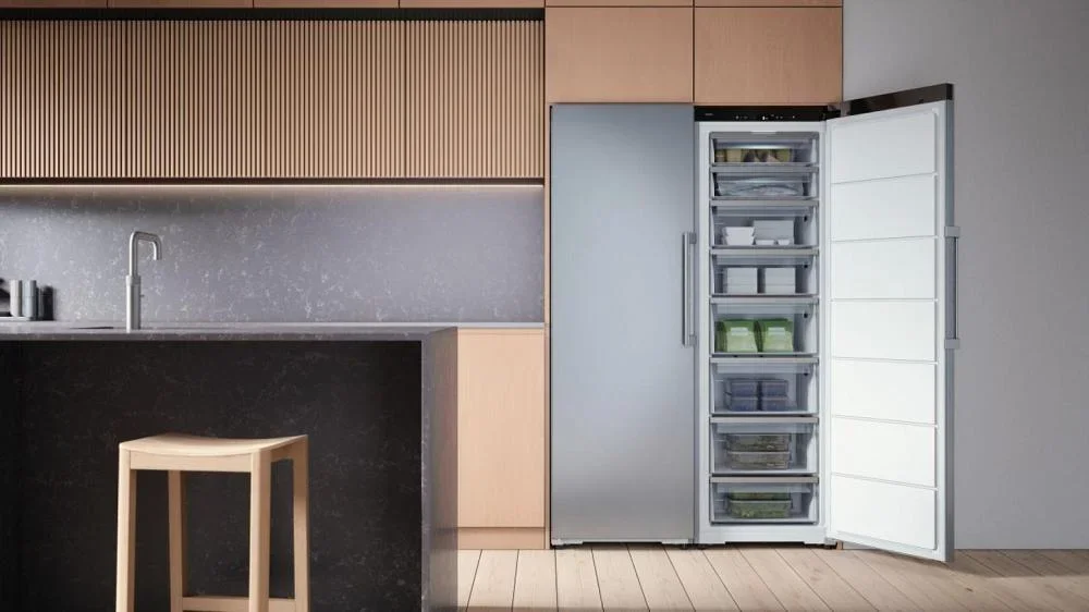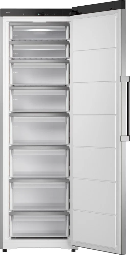 Морозильная камера ASKO RFF586KNCS1 представляет собой элегантное и функциональное решение для тех, кто ценит стиль и производительность: корпус в цвете «нержавеющая сталь» оформлен в дизайне Series 5 и оснащён вычурной ручкой с гравировкой бренда, а продуманная задняя стенка из нержавеющей стали AISI 304 обеспечивает долговечность и простоту ухода. При высоте 185 см и компактной площади основания 59×59 см прибор идеально вписывается в кухонную нишу благодаря поддержке KitchenFit и опции установки Side-by-Side; упаковочные габариты 192×66×73 см облегчают доставку и монтаж. Объём агрегата внушителен — общий 337 л, из них полезно 294 л, размещённых в одной температурной зоне с восемью прозрачными ящиками на телескопических направляющих, что обеспечивает удобный доступ и грамотное зонирование запасов. Система циркуляционного охлаждения с инверторным компрессором и экологичным хладагентом R600A поддерживает стабильную температуру, а технология No Frost исключает образование инея, избавляя от ручного оттаивания; функция суперзамораживания и способность замораживать до 16 кг в сутки пригодятся для быстрого сохранения свежести больших партий продуктов, а автономное сохранение холода в течение 17 часов сохраняет содержимое при временных отключениях питания. Управление выполнено в электронной форме с сенсорными кнопками и ярким TFT-дисплеем, предусмотрены тактильная обратная связь и совместимость с приложением ConnectLife для удалённого контроля; регулировка температуры и адаптивный контроль поддерживают стабильный климат, а индикация — световая и звуковая — оперативно сигнализирует о повышении температуры или оставленной открытой дверце. Внутреннее светодиодное освещение делает содержимое прозрачным и легко обозримым, а наличие лотка для приготовления льда добавляет практичности. Прибор обладает широким набором пользовательских функций: контроль уровня влажности, режим Шаббат, функция «Вечеринка», ночной режим и режим очистки дают гибкость в эксплуатации и упрощают обслуживание. Технические параметры включают один компрессор, класс энергопотребления A++ с годовым расходом 297 кВт·ч, номинальное напряжение 220-240 В при частоте 50-60 Гц, мощность подключения 180 Вт и уровень шума 34 дБ, длина сетевого кабеля 3 м, возможность перевешивания дверцы и регулировки ножек для точной установки. Этот морозильный аппарат с одной дверью и правым дверным упором сочетает в себе премиальный внешний вид, продвинутые функции хранения и высокую энергоэффективность, что делает его надёжным выбором для семей и тех, кто ведёт активную гастрономическую жизнь.
