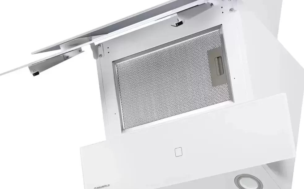 Кухонная вытяжка MAUNFELD Cascada 60 — современная и технологичная модель, изготовленная в футуристичном стиле. Благодаря использованию наклонной формы, устройство является компактным и занимает мало места, при этом нисколько не теряя в производительности. Вытяжная труба и корпус выполнены из металла в белом оттенке, такого же цвета фронтальные панели из закаленного стекла. В дизайне для этой модели использована необычная, но эргономичная каскадная конструкция — вместо одной монолитной дверцы установлено три небольших, расположенных вниз по диагонали. Самая нижняя зафиксирована на месте, на ней находится сенсорный дисплей. Управление осуществляется с помощью нажатия, оно интуитивно понятно, а благодаря отсутствию кнопок за панелью легко ухаживать. Кнопки подсвечиваются белым цветом, информация о выбранной скорости выводится на небольшой дисплей в центре. Две другие дверцы поднимаются вверх, открывая доступ к секции с жироулавливающими фильтрами. Они являются съемными, за счет чего их удобно мыть.