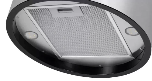 Вытяжка работает в режиме отвода и рециркуляции воздуха. Механическое управление позволяет переключаться между тремя скоростями и зажигать подсветку, расположенную в нижней части корпуса. Прибор оснащен фильтром-жироуловителем, который легко извлекать и мыть.