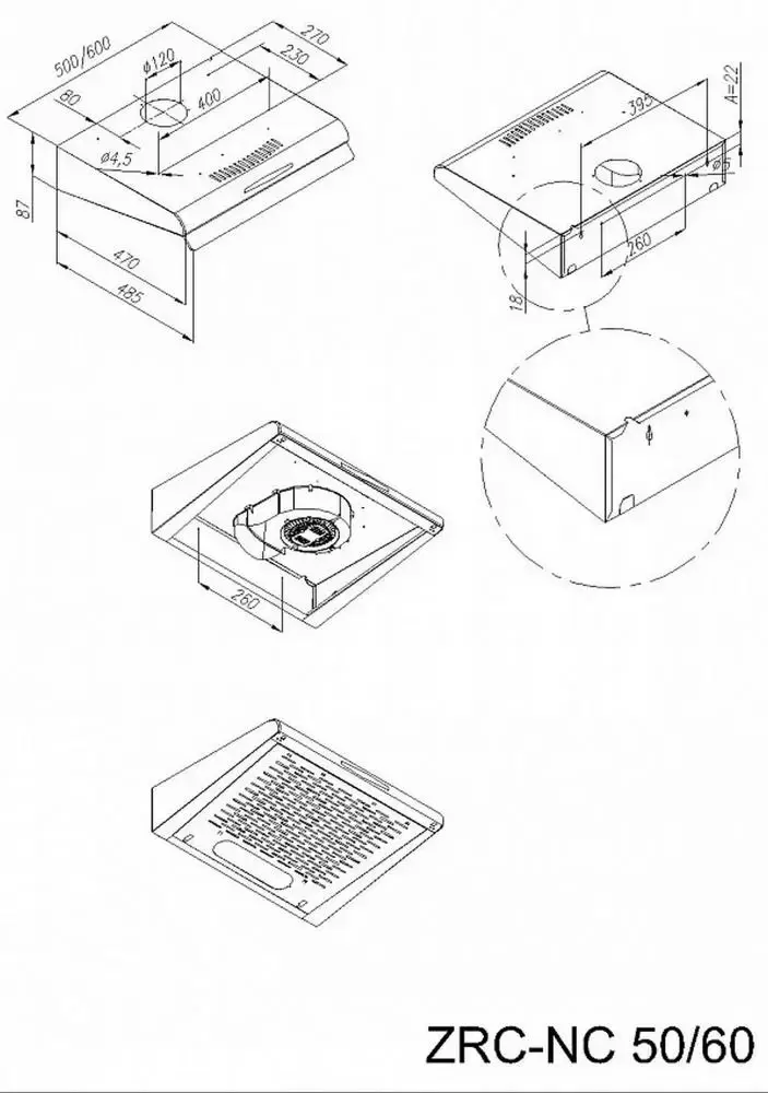 Вытяжка работает в режимах отвода и циркуляции, поэтому загрязнения удаляются из комнаты и перенаправляются в воздуховод, при этом можно очистить воздух и использовать повторно за счет возвращения его в помещение. Количество скоростей в этой модели: 3 шт. При этом максимальная производительность составляет 420 куб.м./ч. Уровень шума при полной загруженности — 49 дБ.