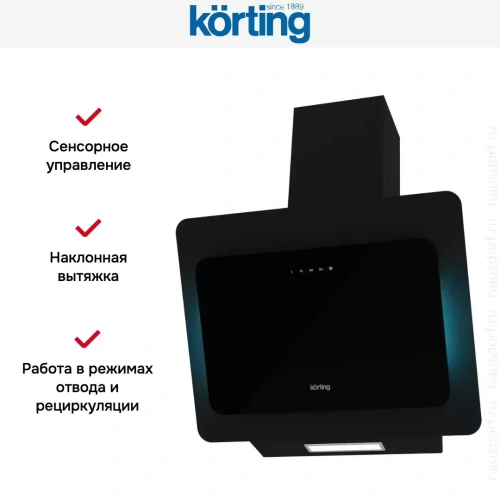 Данная вытяжка крепится на стену и имеет наклонную фронтальную панель, что придает изюминку дизайну и позволяет сохранить свободное рабочее пространство внизу. Обратите внимание на цветовые сочетания модели Korting KHC 67590 GN, чтобы органично вписать ее в свою квартиру. Оттенок корпуса: черный. Благодаря лампочкам, которые расположены на нем, можно освещать плиту и столешницу рядом, чтобы готовить было еще проще и приятнее.