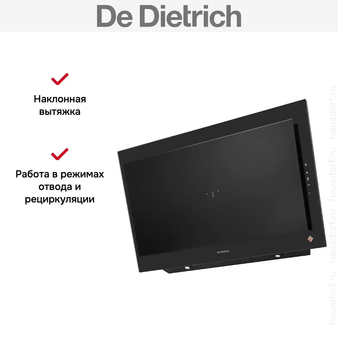Данная вытяжка крепится на стену и имеет наклонную фронтальную панель, что придает изюминку дизайну и позволяет сохранить свободное рабочее пространство внизу. Обратите внимание на цветовые сочетания модели De Dietrich DHV2963B, чтобы органично вписать ее в свою квартиру. Оттенок корпуса: черный. Благодаря лампочкам, которые расположены на нем, можно освещать плиту и столешницу рядом, чтобы готовить было еще проще и приятнее.