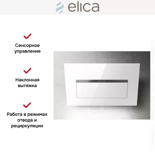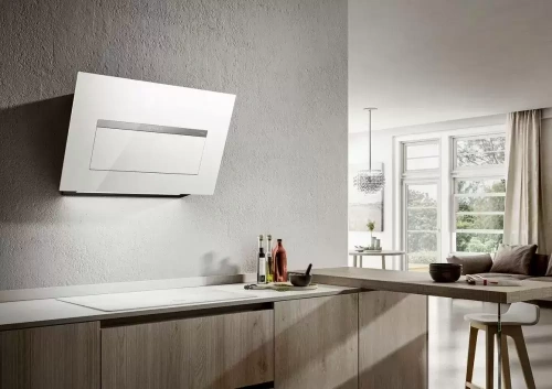 Данная вытяжка крепится на стену и имеет наклонную фронтальную панель, что придает изюминку дизайну и позволяет сохранить свободное рабочее пространство внизу. Обратите внимание на цветовые сочетания модели Elica BLOOM-S WH/A/85, чтобы органично вписать ее в свою квартиру. Оттенок корпуса: белое стекло. Благодаря лампочкам, которые расположены на нем, можно освещать плиту и столешницу рядом, чтобы готовить было еще проще и приятнее.