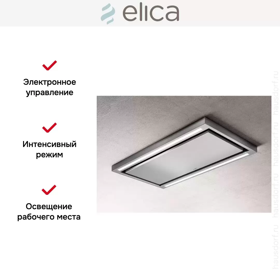 Вытяжка Elica CLOUD SEVEN IX/A/90 — необычное и современное решения для кухонь. Невысокая пластина монтируется к потолку и подключается к вентиляции. Очистка воздуха происходит через его отвод из помещения. Устройство оборудована мощным мотором, который позволяет быстро и эффективно устранить запахи и испарения от готовящейся еды. Полоски светодиодов отлично освещают рабочую зону и являются дополнительными источниками света на кухне. Управление происходит через пульт. Низкий уровень шума не создает неудобств и не мешает. Фильтры легко снимаются для обслуживания. Многие отмечают легкий монтаж и понятную инструкцию.