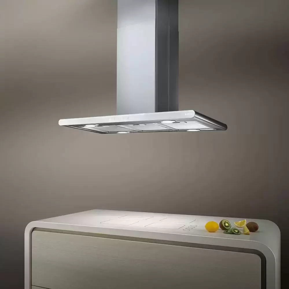 Вытяжка шириной 90 сантиметров подойдет для установки над пятиконфорочными варочными панелями, а также комбинациями из нескольких устройств типа «Домино». За счет высокой эффективности мотора испарения от готовящейся еды быстро попадают в вытяжку для быстрого их устранения.
