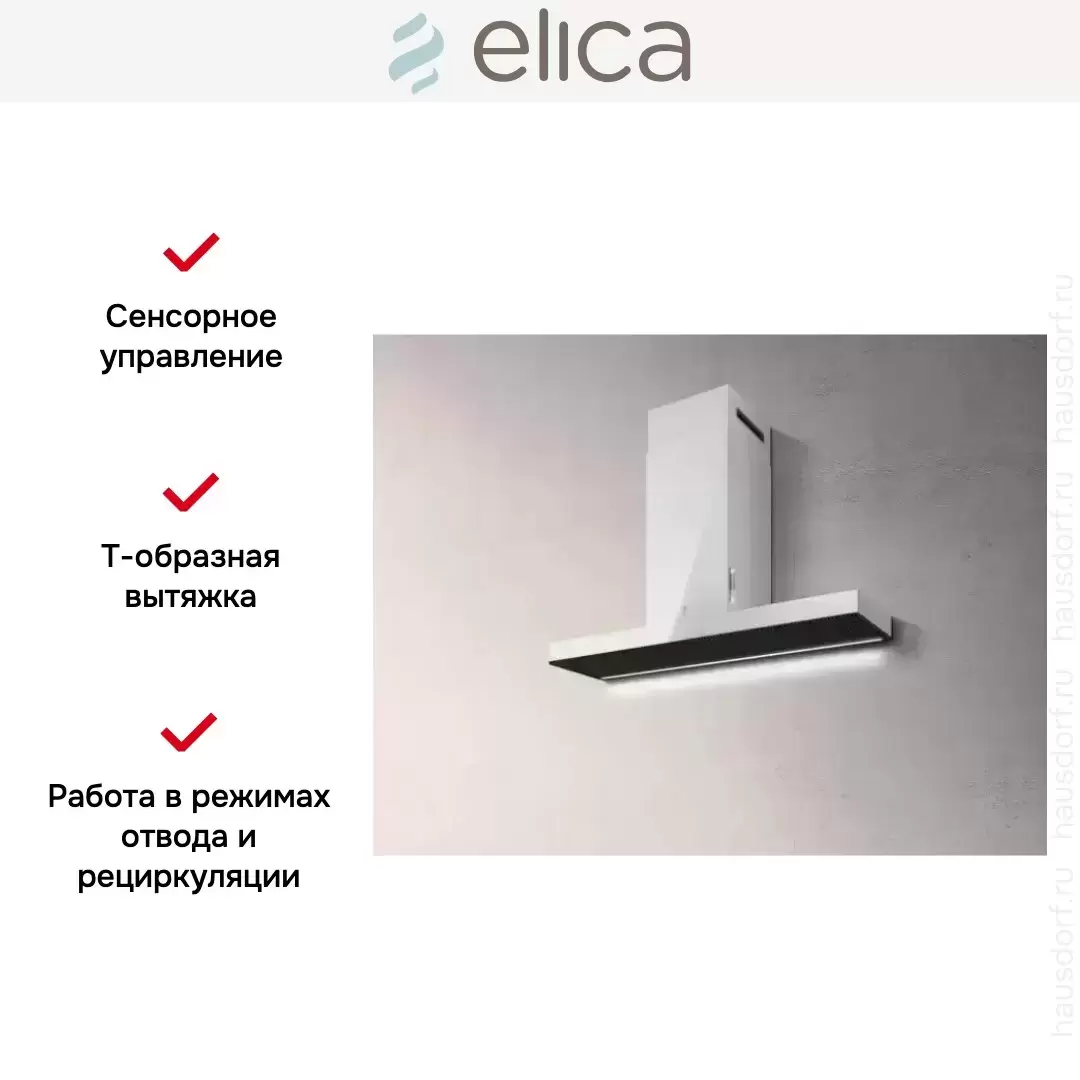 Матовый белый цвет корпуса элегантно впишется в различные интерьерные решения. Пользователю предоставлены три режима скорости. Наличие таймера — дополнительное преимущество устройства. Сенсорные элементы отличает быстрый отклик на прикосновение, что создает дополнительный комфорт эксплуатации. Вытяжку можно подсоединить к вентиляции для отвода загрязненного воздуха или установить угольный фильтр для очистки потоков непосредственно в помещении (циркуляция). Светодиодное освещение удобно использовать при приготовлении, так как лампа хорошо освещает рабочую зону.