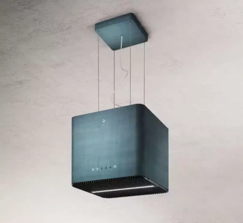 Изящная современная вытяжка подвесного типа монтажа выполнена из качественных материалов. Модель выполнена в форме куба. Дизайн в стиле джинсовой ткани эффектно смотрится в современных интерьерах. Расстояние до рабочей поверхности легко регулировать при помощи жгутов. Предустановлено три уровня мощности, которые легко переключаются с помощью сенсорных кнопок. Для комфортного приготовления предусмотрена светодиодная подсветка, которая равномерно освещает рабочую зону. Жироулавливающий фильтр легко снимается для очистки. Для экономии времени его можно мыть в посудомоечной машине.