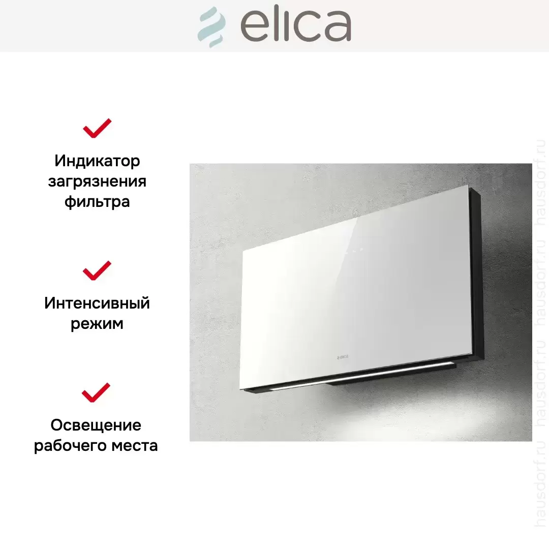 Крепление вытяжки к стене — стандартное для многих моделей, ими удобно управлять, так как кнопки находятся на расстоянии вытянутой руки. Обратите внимание на цветовые сочетания модели Elica PLAT WH/F/55, чтобы органично вписать ее в свою квартиру. Оттенок корпуса: белый. Благодаря лампочкам, которые расположены на нем, можно освещать плиту и столешницу рядом, чтобы готовить было еще проще и приятнее.