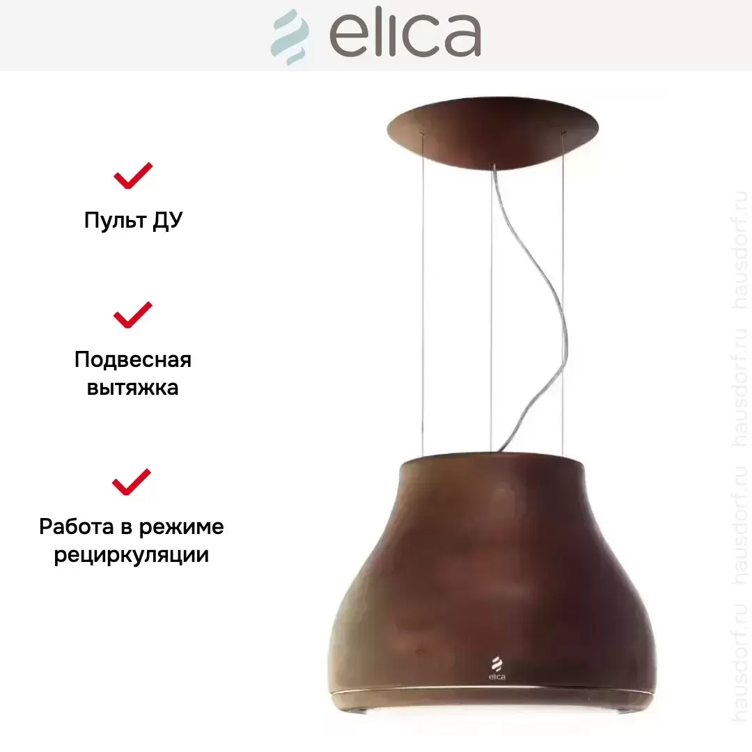 Elica SHINING RUST/F/50 — трехскоростная вытяжка в металлическом корпусе с эффектом ржавчины. Модель укомплектована угольным и жировым фильтрами, пультом дистанционного управления, а также тросами и кронштейном для монтажа. Яркая LED-подсветка улучшает обзор варочной зоны на кухне. Одна светодиодная лампа может быть использована не только для освещения варочной зоны, но и в качестве дополнительного источника света на кухне. Модель работает в режиме циркуляции. Для его функционирования требуется установка угольного фильтра, который нужно периодически заменять на новый. Среди преимуществ: автоматический режим, оригинальный дизайн, LED-подсветка.