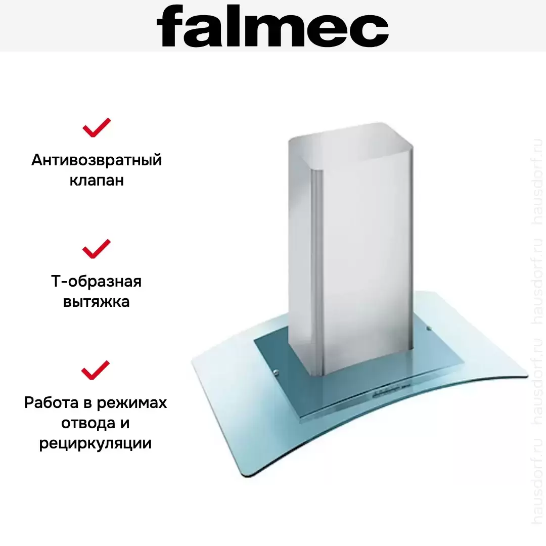 Компактная модель Falmec Astra isola 60 vetro (800) ECP в корпусе из закаленного стекла и нержавеющей стали с эффектом щетки оборудована встроенной подсветкой для большего комфорта в процессе приготовления.