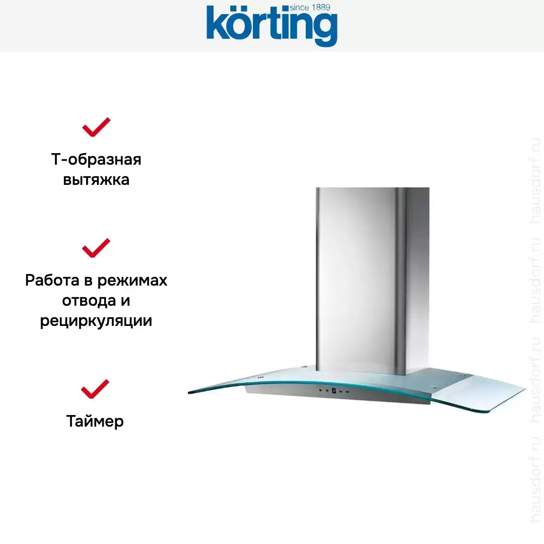 Вытяжка Korting KHC 9954 X — элегантная, надежная и функциональная модель от именитого бренда. Устройство сочетает в себе гармонию нержавеющей стали и стекла. Прибор будет хорошо смотреться как в классических, так и современных интерьерных решениях. Кнопочная панель управления располагается на фасадной части. Элементы имеют графические обозначения для быстрой настройки параметров. Наличие дисплея добавляет удобство при эксплуатации изделия. Благодаря таймеру вытяжка Кортинг KHC 9954 X автоматически отключается и ее не нужно контролировать до конца работы. В качестве освещения — галогеновые лампы.