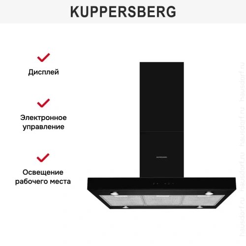 Данная вытяжка крепится к потолку — обычно над кухонным островом, где расположена рабочая зона. Обратите внимание на цветовые сочетания модели Kuppersberg DUDL 8 GB, чтобы органично вписать ее в свою квартиру. Оттенок корпуса: черный. Благодаря лампочкам, которые расположены на нем, можно освещать плиту и столешницу рядом, чтобы готовить было еще проще и приятнее.
