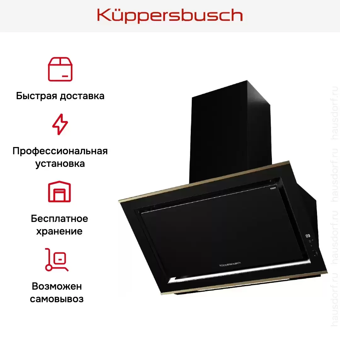 Данная вытяжка крепится на стену и имеет наклонную фронтальную панель, что придает изюминку дизайну и позволяет сохранить свободное рабочее пространство внизу. Обратите внимание на цветовые сочетания модели Kuppersbusch DW 9880.0 S4, чтобы органично вписать ее в свою квартиру. Оттенок корпуса: черный. Благодаря лампочкам, которые расположены на нем, можно освещать плиту и столешницу рядом, чтобы готовить было еще проще и приятнее.