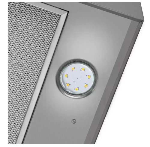 Вытяжка работает в режимах отвода и циркуляции, поэтому загрязнения удаляются из комнаты и перенаправляются в воздуховод, при этом можно очистить воздух и использовать повторно за счет возвращения его в помещение. Количество скоростей в этой модели: 4 шт. При этом максимальная производительность составляет 1150 куб.м./ч. Уровень шума при полной загруженности — 52 дБ.