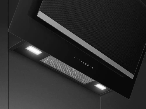 Данная вытяжка крепится на стену и имеет наклонную фронтальную панель, что придает изюминку дизайну и позволяет сохранить свободное рабочее пространство внизу. Обратите внимание на цветовые сочетания модели Smeg KV194N, чтобы органично вписать ее в свою квартиру. Оттенок корпуса: черный. Благодаря лампочкам, которые расположены на нем, можно освещать плиту и столешницу рядом, чтобы готовить было еще проще и приятнее.