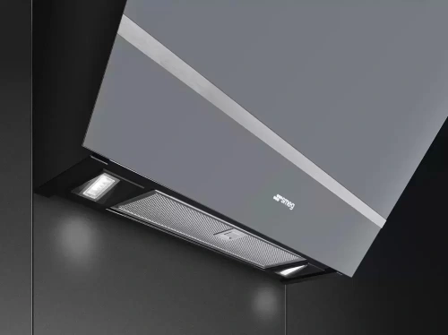 Стильная наклонная вытяжка с фронтом из серебристого стекла и нержавеющей стали подойдет любой современной кухне. В комплекте два жироулавливающих и один угольный фильтр. Благодаря им вы можете включать как режим отвода, так и режим рециркуляции очищенного воздуха. На фронтальной сенсорной панели управления можно выбрать три скорости работы, а также интенсивный режим повышенной мощности.