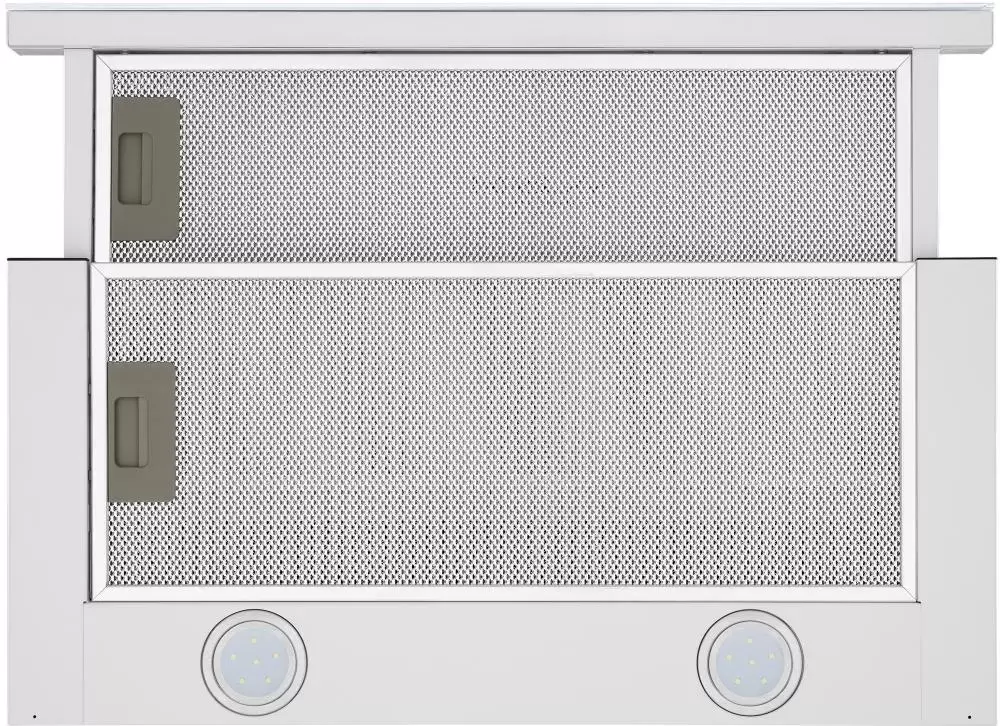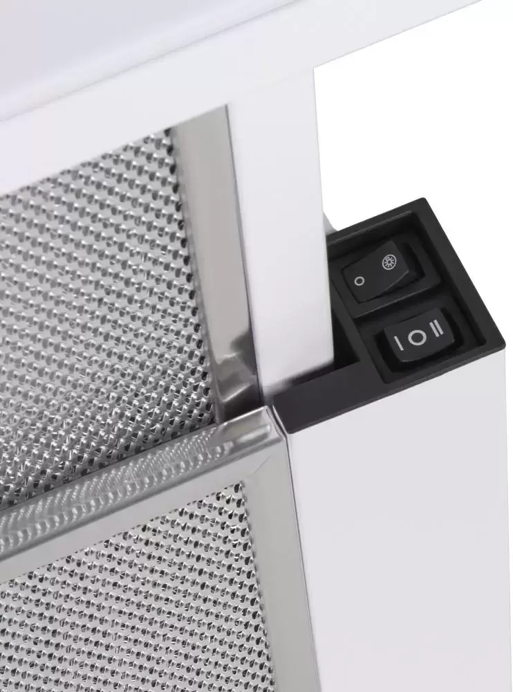 Площадь рабочей поверхности легко увеличить, для этого предусмотрена выдвижная панель. В сложенном виде устройство очень компактно и не занимает много места. Переключатели механические (кулисные) и находятся сбоку. Вы легко сможете выбрать нужный режим во время готовки. Устройство нужно подключить к воздуховоду и вентиляции, в комплект входит специальный переходник. Модель работает на двух скоростях. Имеются два режима: отвод и рециркуляция. В первом случае загрязненный воздух удаляется из комнаты в вентиляцию. Во втором — проходит через систему очистки и возвращается обратно в комнату. В комплексе эти две опции быстро избавляют воздух от частиц жира, копоти и неприятных запахов.