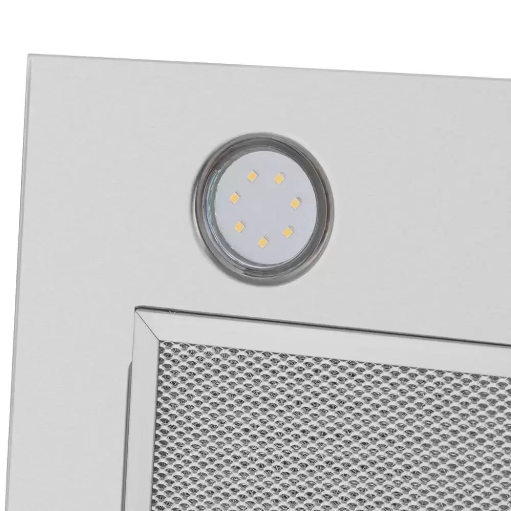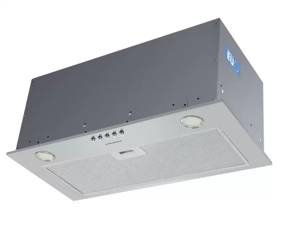 Встраиваемая кухонная вытяжка MAUNFELD Crosby Power 60 выполнена из нержавеющей стали. Устройство имеет прямоугольную форму. Вы без труда разместите его в любом кухонном шкафу. Модель работает в режиме отвода и рециркуляции, ее нужно присоединить к воздуховоду и вентиляции. Предусмотрено три скорости работы. Для переключения режимов используются кнопки, расположенные на фронтальной панели. Прибор может очистить воздух от жира и неприятных запахов в кухне площадью до 35 квадратных метров. В рабочую панель встроены две яркие светодиодные лампы. Они хорошо освещают зону приготовления пищи.
