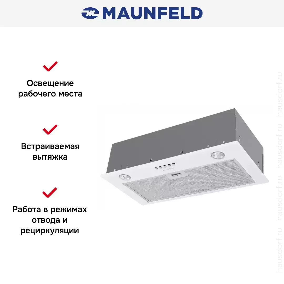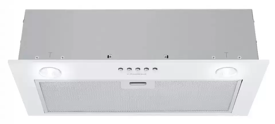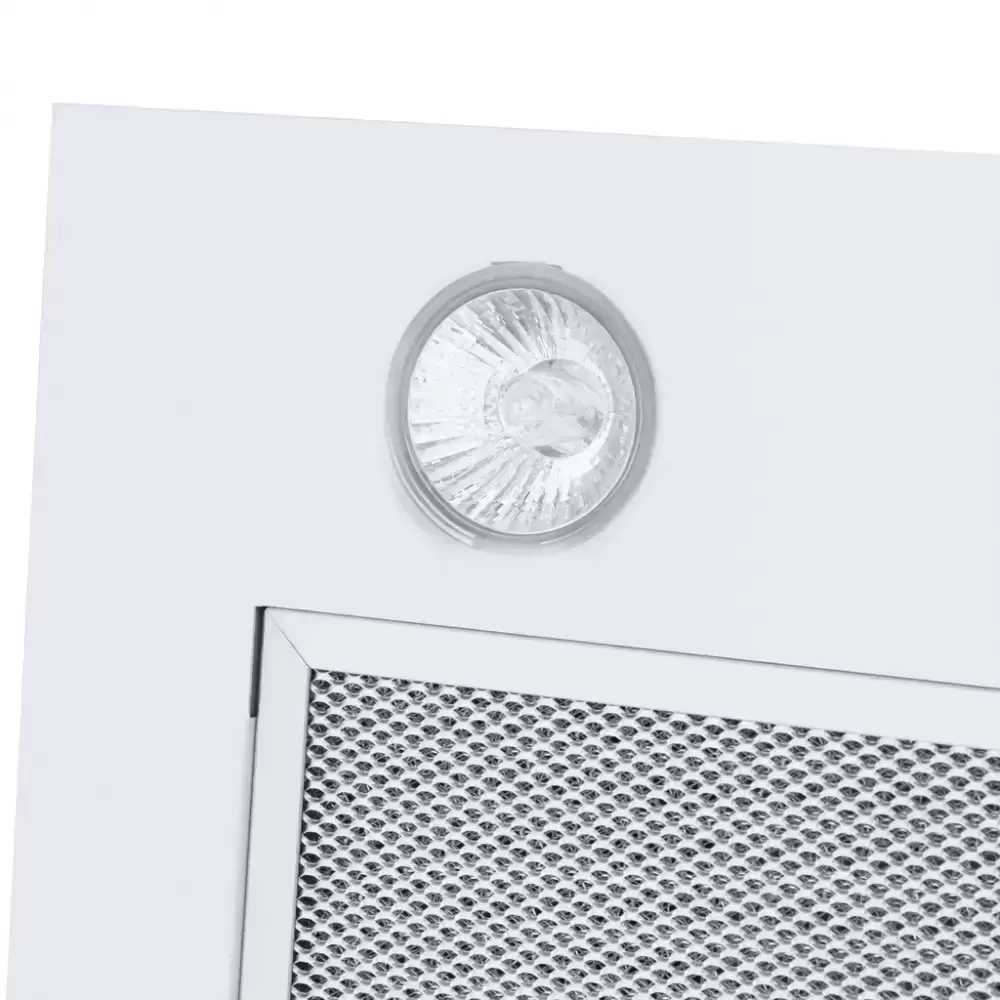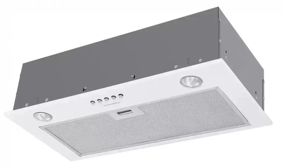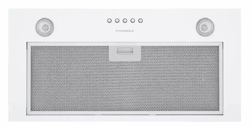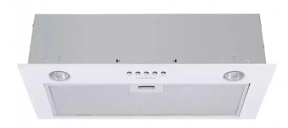 Встраиваемая кухонная вытяжка MAUNFELD Crosby Singl 60 в белом цвете хорошо сочетается с классическими и современными гарнитурами. Ее можно установить в ретро интерьере. Поскольку корпус устройства полностью убирается в подвесной шкаф, модель практически незаметна, не перетягивает на себя внимание и не выбивается из общего оформления. Две встроенные лампы хорошо освещают всю рабочую зону (в том числе варочную панель и столешницу рядом с ней). Управление механическое. Кнопки расположены спереди, ими удобно пользоваться во время готовки. Скорости можно переключать в любом порядке. Корпус изделия сделан из прочного металла. Он прочный, долговечный и не подвержен коррозии. Прибор будет прекрасно выглядеть долгое время.