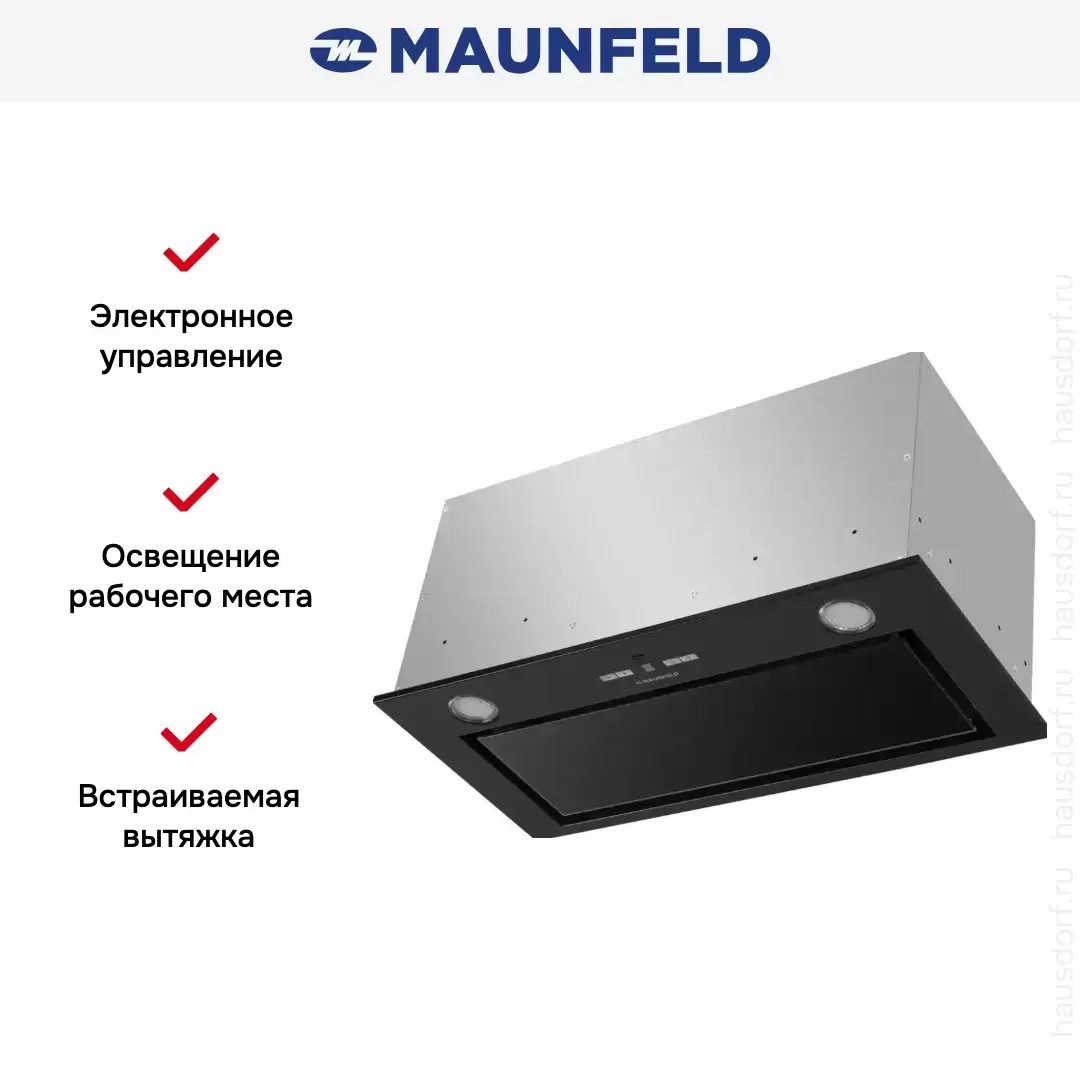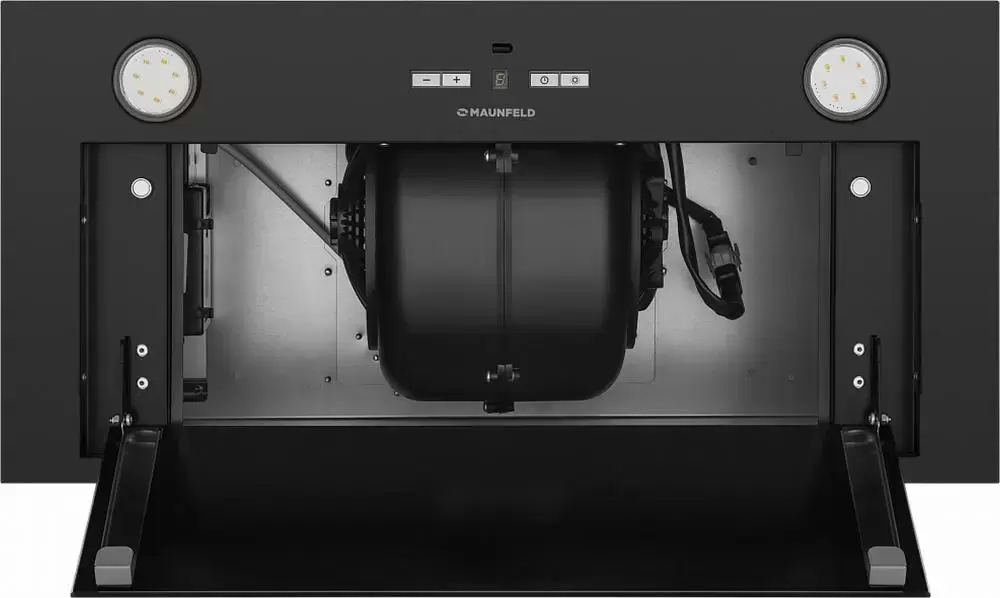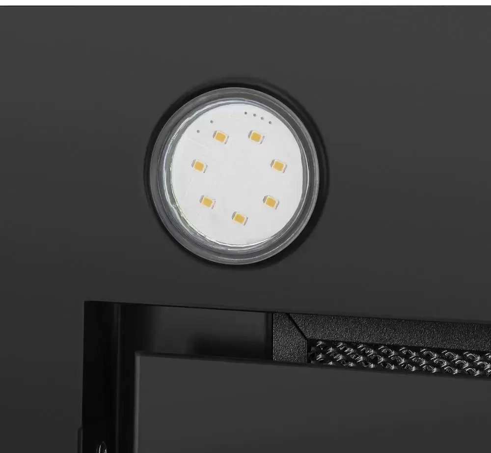 Встраиваемая вытяжка — выбор тех, кто хочет максимально задекорировать технику, или владельцев маленькой кухни. Тип встраивания: в шкаф. Обратите внимание на цветовые сочетания модели Maunfeld Fantasy 1000ST 60 Black Glass, чтобы органично вписать ее в свою квартиру. Оттенок корпуса: черный. Благодаря лампочкам, которые расположены на нем, можно освещать плиту и столешницу рядом, чтобы готовить было еще проще и приятнее.