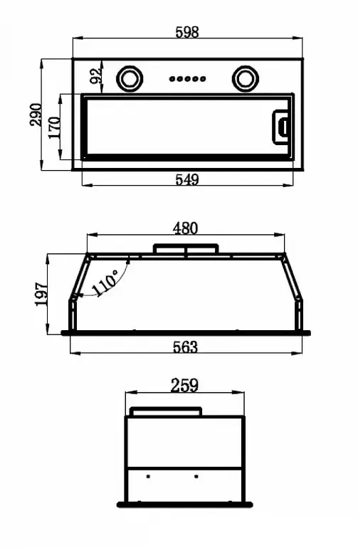 | Тип техники | Встраиваемая кухонная вытяжка | |