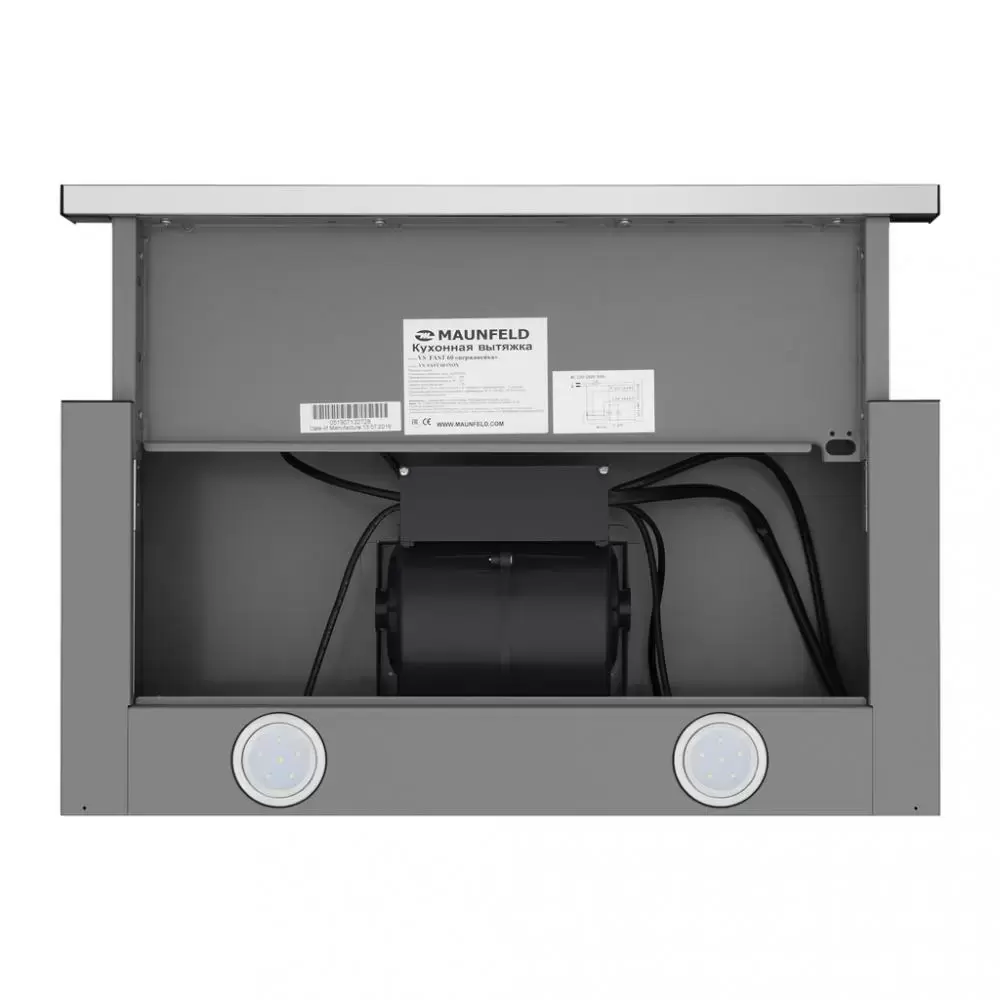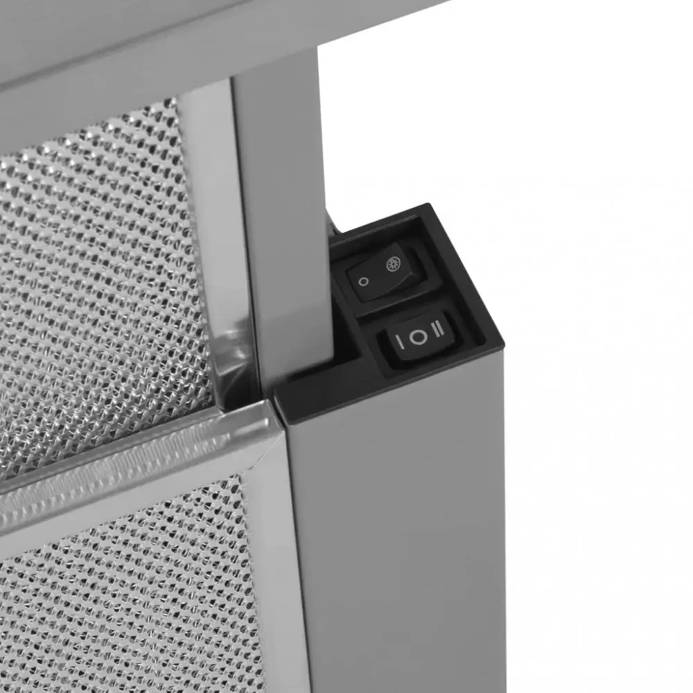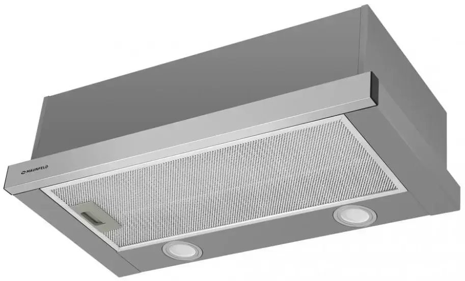 Встраиваемая кухонная вытяжка MAUNFELD VS Fast 50 сделана из нержавеющей стали. Она компактная и мощная, ее можно установить в комнате площадью до 30 квадратных метров. Соотношение цены и качества оптимальны. Управление механическое (кулисные переключатели). Вы можете выбрать одну из двух скоростей работы. Устройство хорошо сочетается со всеми видами кухонных гарнитуров и будет прекрасно смотреться в любом интерьере. Рабочая поверхность увеличивается. Для этого достаточно выдвинуть вперед скрытую панель. Две встроенные лампы освещают зону приготовления пищи. Прибор можно использовать в качестве дополнения к основной люстре.