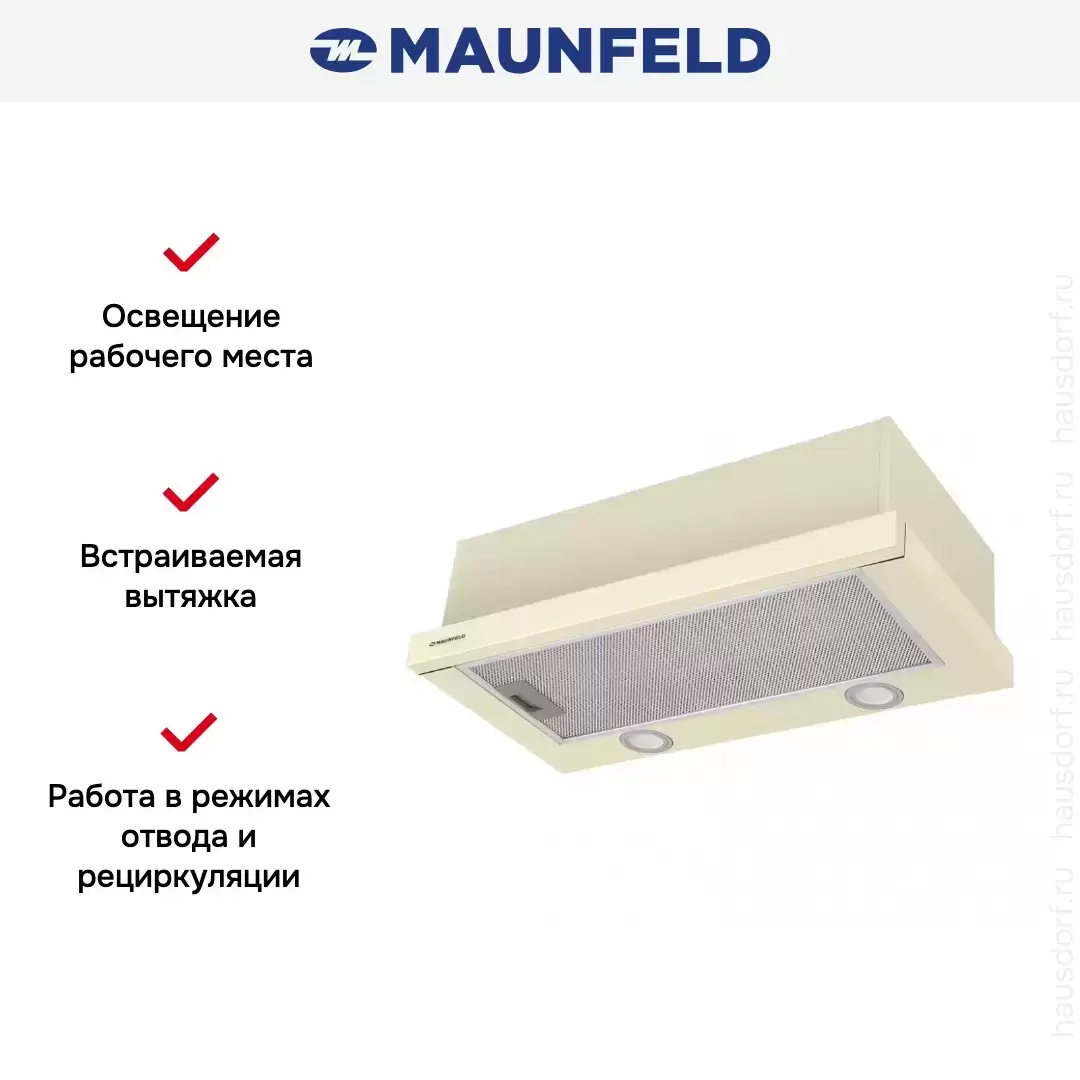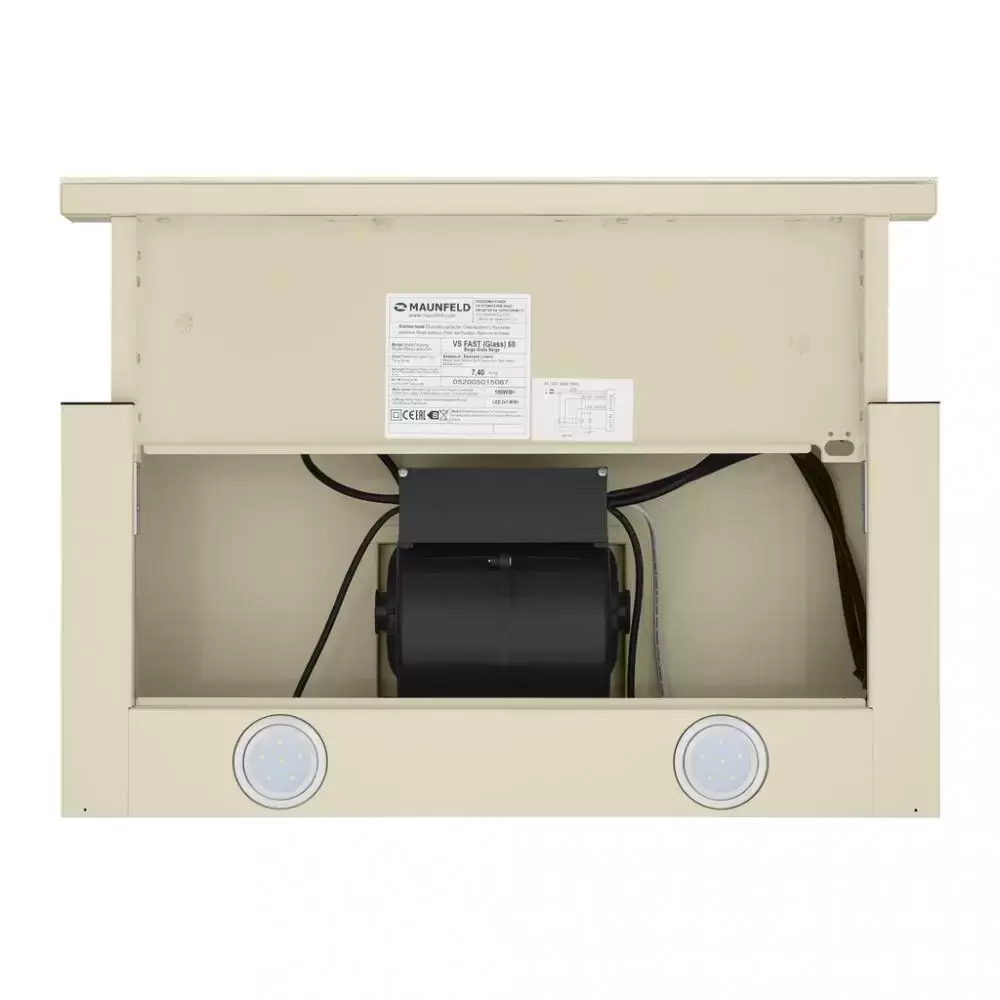 Встраиваемая вытяжка — выбор тех, кто хочет максимально задекорировать технику, или владельцев маленькой кухни. Тип встраивания: в шкаф. Обратите внимание на цветовые сочетания модели Maunfeld VS Fast (Glass) 60 Beige, чтобы органично вписать ее в свою квартиру. Оттенок корпуса: бежевый. Благодаря лампочкам, которые расположены на нем, можно освещать плиту и столешницу рядом, чтобы готовить было еще проще и приятнее.